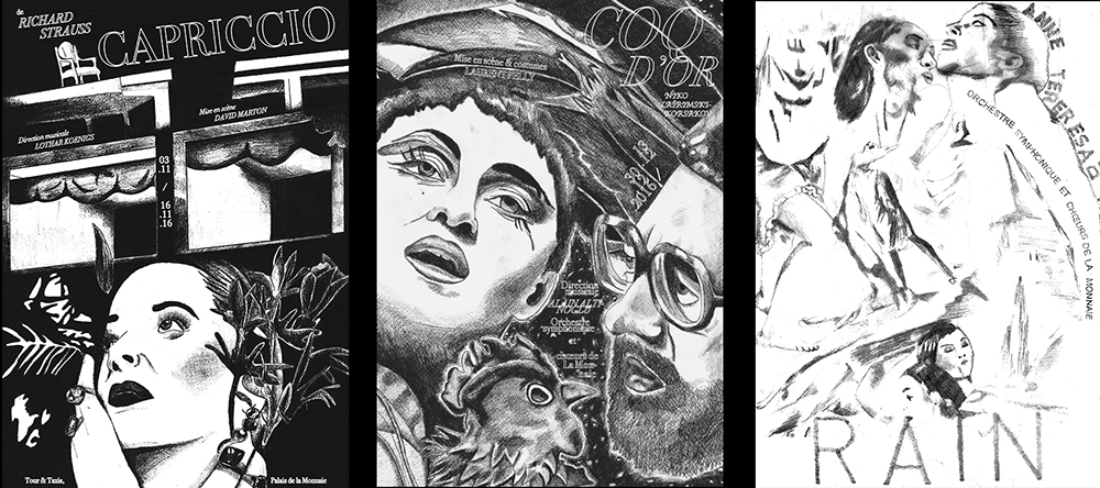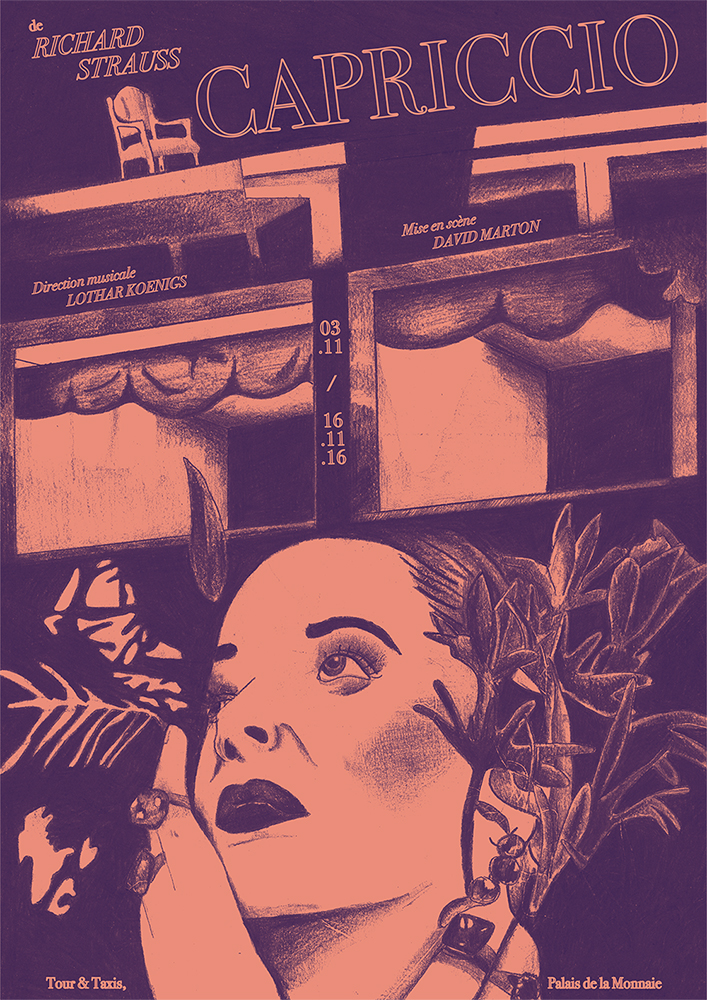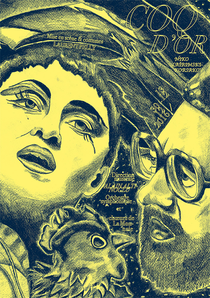 << HOME PAGE OPÉRA Affiches réalisées pour les Opéras « Capriccio » et « Coq d’Or », vus au théâtre de la Monnaie de Bruxelles en 2016. Illustrations réalisées au crayon de couleur puis imprimées en risographie. Format A3