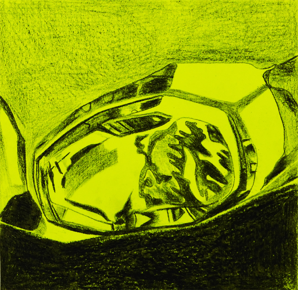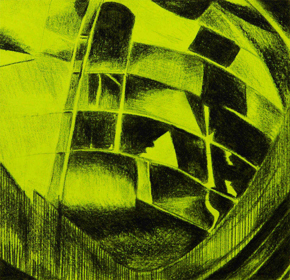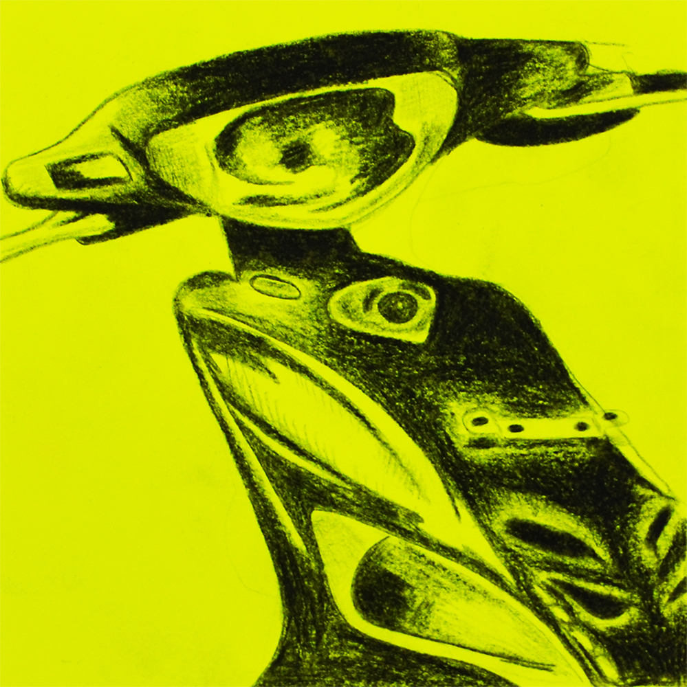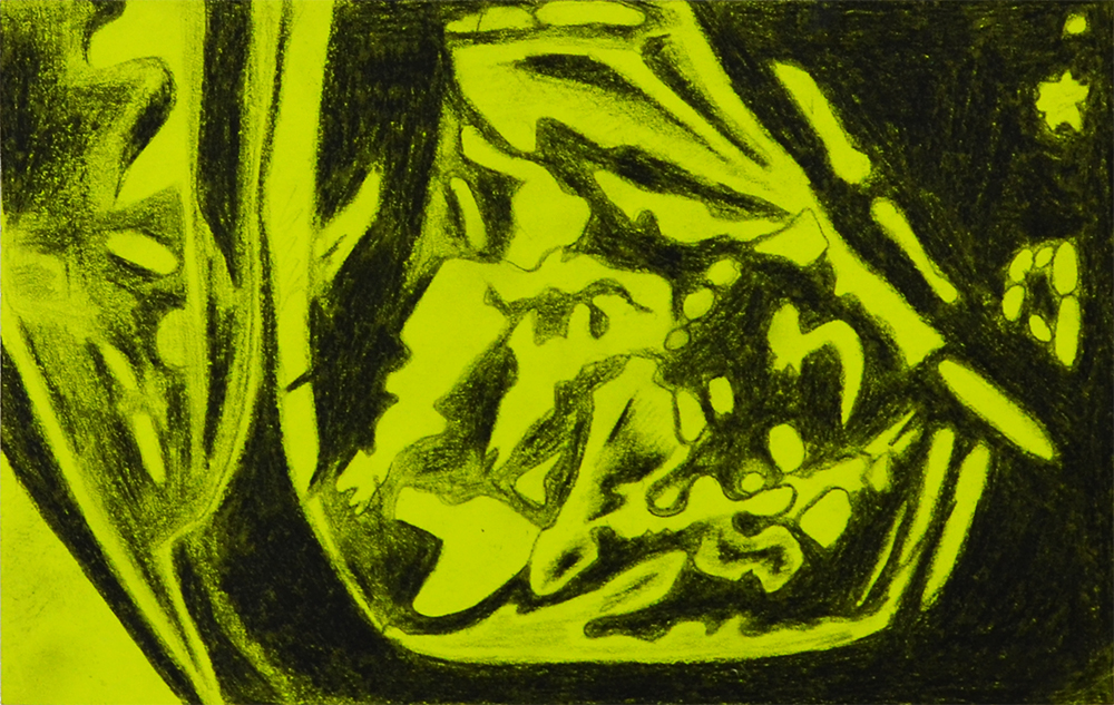 Dessin au crayon de couleur noir sur papier jaune fluo